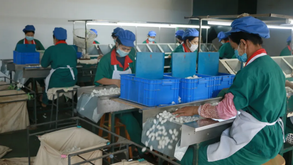 公司員工正在對蠶繭進行加工處理