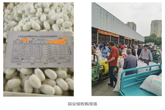 江蘇富安繭絲綢股份有限公司區(qū)域蠶農(nóng)2024年春蠶化蛹繭普遍一張種達(dá)到100斤以上,張產(chǎn)量達(dá)110斤左右的比比皆是,多的據(jù)講達(dá)到126斤,這次蠶繭產(chǎn)量,質(zhì)量,價(jià)格均超過歷史,收購(gòu)票面單價(jià)普遍71元左右。蠶農(nóng)對(duì)今年蠶繭豐收,價(jià)格高喜悅之情溢于言表。