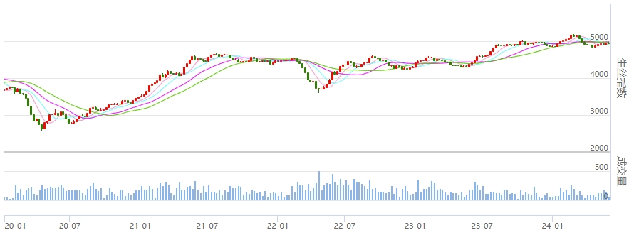 今日(周五)生絲盤面繼續(xù)小幅盤整震蕩,成交一般,各合約間持倉(cāng)量各有小幅漲跌。盤面繼續(xù)在新形勢(shì)下摸索前行。本周生絲電子指數(shù)累計(jì)下跌0.46%報(bào)收于4941.99點(diǎn)。