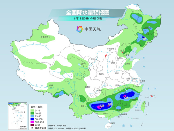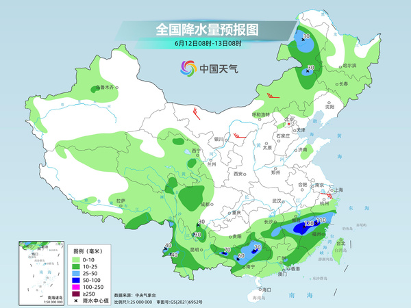 后天,東北地區(qū)東部、遼寧中北部、江南大部、西南地區(qū)南部、華南大部等地部分地區(qū)有中到大雨,其中,江西中北部、浙江中部、福建西北部、廣西東北部、廣東西北部等地部分地區(qū)有暴雨或大暴雨。