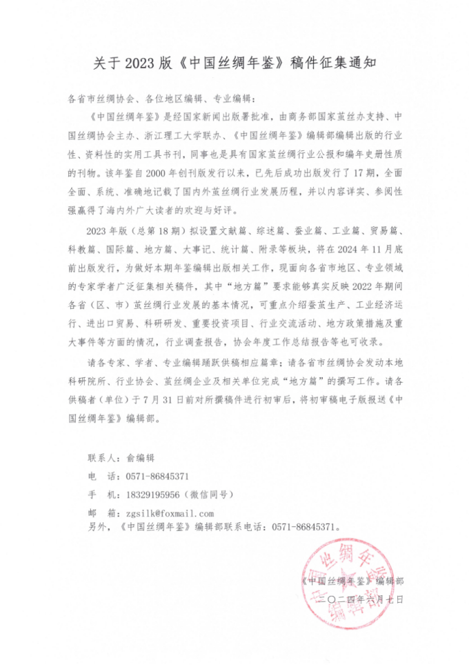 行業(yè)新聞丨關(guān)于2023版《中國絲綢年鑒》稿件征集通知