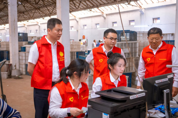 在收購現(xiàn)場,該行領(lǐng)導(dǎo)班子一邊指揮黨員先鋒隊(duì)成員開展服務(wù),現(xiàn)場查看信息校驗(yàn)、系統(tǒng)錄入的實(shí)際情況,一邊與蠶繭站工作人員和蠶農(nóng)親切交談,主動(dòng)詢問桑蠶養(yǎng)殖情況、春繭銷售行情以及金融服務(wù)需求。
