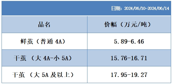 本周高品位生絲協(xié)作單位成交價(jià)格區(qū)間