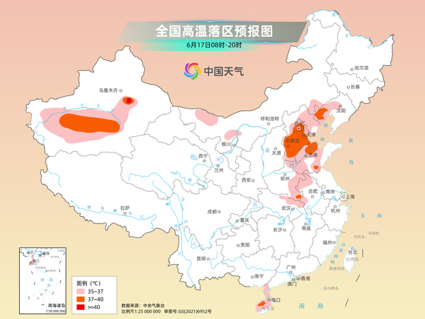 今天起至19日,隨著暖高壓脊東移,華北、黃淮、江淮等地的高溫天氣將再度發(fā)展。其中,今天,內(nèi)蒙古西北部、新疆南疆盆地和東部、河北中南部和東北部、北京、天津、遼寧西部、山東中西部、河南東部和南部、安徽北部、湖北東北部、海南島大部等地有35~36℃高溫天氣,其中,新疆南疆盆地、河北中南部、北京南部、遼寧西南部、山東北部等地部分地區(qū)最高氣溫37~39℃,新疆吐魯番盆地等地局地可達40℃以上。
