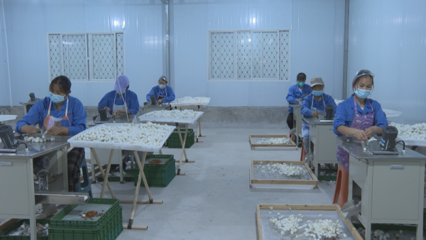 “我今年62歲了,在這個(gè)廠里給他們養(yǎng)蠶,每天都付我100塊錢工資,基本上天天有工作。除了養(yǎng)蠶,我還可以上山去剪枝、施肥、割草,摘蠶繭?!惫と烁呖谁偢吲d地說(shuō)道。