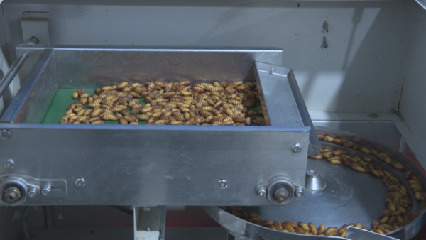 眼下這批蠶是該公司今年飼育的第二批蠶子,這批蠶寶寶已經(jīng)進(jìn)入飼育的第七天,再過(guò)3天左右,所有的蠶寶寶將開始吐絲結(jié)繭。采訪中,管理人員張舒舒算了一筆經(jīng)濟(jì)賬。“如果我們按照上一批的這個(gè)產(chǎn)量來(lái)算的話,一張是130斤,15張可以結(jié)繭2000斤左右,價(jià)格是35一斤,我們現(xiàn)在這一批15張可以將近達(dá)到7萬(wàn)塊錢?!睆埵媸嬲f(shuō)道。