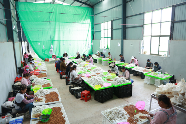 為了更好地帶動(dòng)農(nóng)戶發(fā)展種桑養(yǎng)蠶產(chǎn)業(yè),師宗縣引進(jìn)公司,集中收購(gòu)?!叭ツ?,我們?cè)隈R灣村建了一個(gè)蠶蛹廠,每一批蠶繭制作量大概是1500公斤到2000公斤,每天可以接納務(wù)工人員60到80人,人均日收入130元左右,有效地解決了當(dāng)?shù)鼐用竦膭?wù)工問題?!痹颇夏彻靖笨偨?jīng)理況曉維介紹。