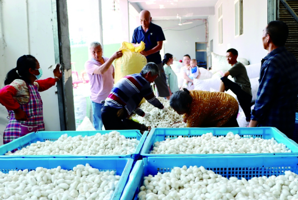 6月14日,重慶市黔江區(qū)首批春繭開(kāi)秤收購(gòu),廣大蠶農(nóng)喜迎一年桑蠶生產(chǎn)“開(kāi)門紅”,喜獲第一桶“蠶金”。