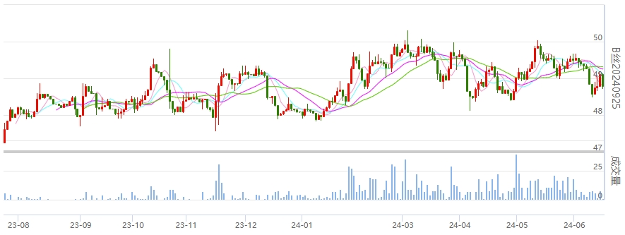 今日(周二)盤面生絲合約價格有所震蕩,近月合約略收紅,主力240925和250325生絲合約又再度走跌跌破主要均線,價格再度進入震蕩。
