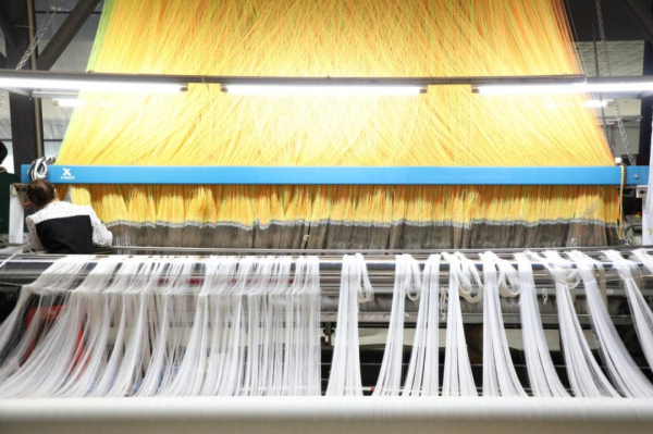 該產(chǎn)業(yè)園前道準(zhǔn)備車間內(nèi),機(jī)器忙碌運(yùn)轉(zhuǎn)