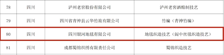 近日,文旅部公布了2023—2025年國家級非物質(zhì)文化遺產(chǎn)生產(chǎn)性保護示范基地名單,四川省僅4家企業(yè)和單位上榜。其中,南充市四川銀河地毯有限公司的地毯織造技藝(閬中絲毯織造技藝)成功入選。