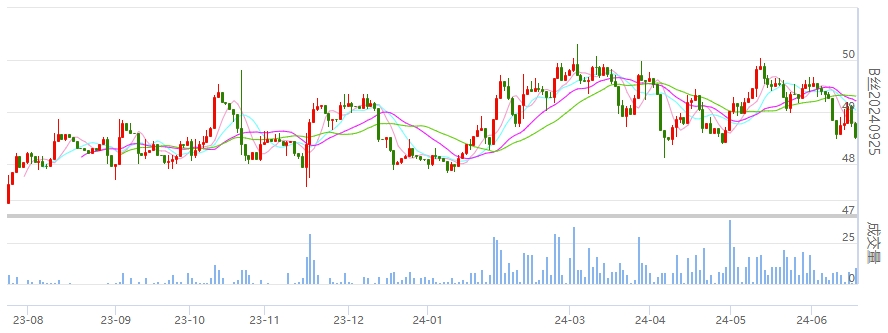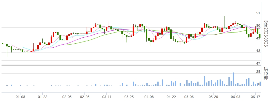 今日(2024年06月19日,周三)中國(guó)繭絲綢交易市場(chǎng)生絲電子指數(shù)下跌0.35%報(bào)于4896.45點(diǎn)。B絲(商檢4A級(jí)生絲):240625合約下跌0.06萬(wàn)元報(bào)收于49.14萬(wàn)元;240925合約下跌0.27萬(wàn)元報(bào)收于48.51萬(wàn)元;250325合約下跌0.33萬(wàn)元報(bào)收于49.17萬(wàn)元。