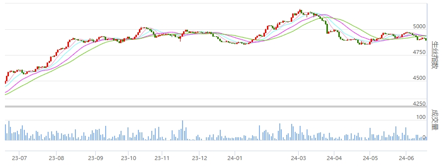今日盤(pán)面各遠(yuǎn)近合約生絲價(jià)格有所收綠,成交一般,現(xiàn)貨面上,進(jìn)入6月淡季后,生絲與面料市場(chǎng)同樣有所走淡。