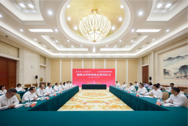 會上,唐曉東、陳述代表雙方簽署戰(zhàn)略合作框架協(xié)議。根據協(xié)議,雙方將秉持“資源共享、優(yōu)勢互補、互惠互利、共同發(fā)展”的原則,聚焦貿易、金融、文旅等重點合作領域,高標準落實國企改革深化提升行動要求,實現(xiàn)更廣領域、更多維度、更高層次的地企合作,助力蘇豪控股集團實現(xiàn)“建設世界一流企業(yè)”發(fā)展愿景,更好服務蘇州區(qū)域經濟社會發(fā)展,攜手推進中國式現(xiàn)代化江蘇新實踐。