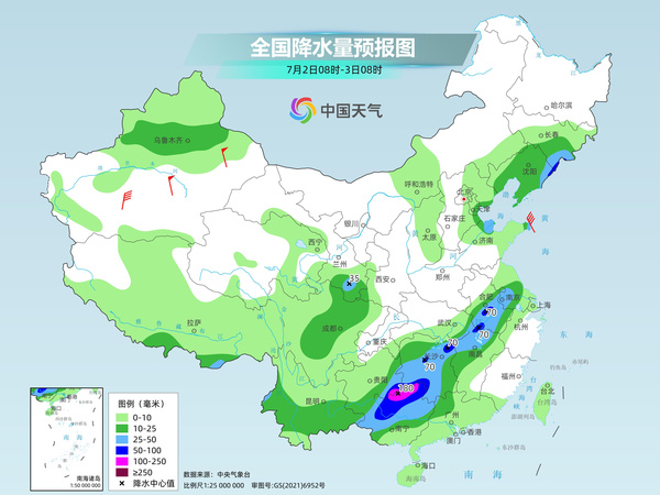 今明兩天(7月1日至2日),長江中下游至貴州、廣西等地仍有強降雨,部分地區(qū)有大暴雨,為此中央氣象臺今晨繼續(xù)發(fā)布暴雨橙色預警。上述地區(qū)強降雨與前期高度重疊,當?shù)匦柚敺郎胶?、中小河流洪水、地質災害的發(fā)生。7月3日前后,隨著降雨減弱減少,江南等地高溫發(fā)展,多地或迎來今年首個高溫日。