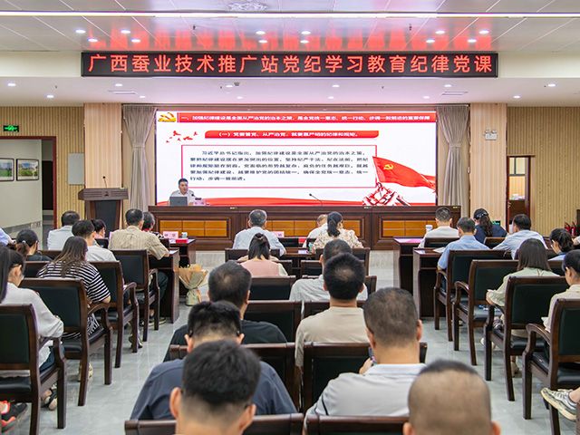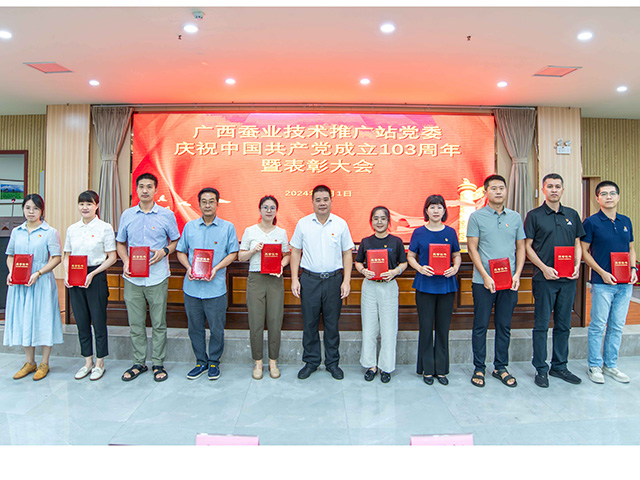 7月1日,廣西蠶業(yè)技術(shù)推廣站黨委召開慶祝中國共產(chǎn)黨成立103周年暨表彰大會,全站黨員、入黨積極分子參加會議。會議由站黨委委員、副站長韋偉主持。