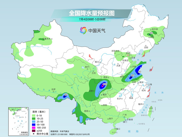 今天長江中下游的降雨將明顯減弱,強降雨帶會位于四川南部、云南東北部到黃淮一帶。中央氣象臺預計,陜西西南部、四川盆地北部、重慶中東部、湖北中西部、河南東部和南部、安徽北部、江蘇西北部、山東南部以及黑龍江南部、吉林中部、云南西部和東南部等地的部分地區(qū)有大到暴雨,其中,河南東南部等地局地有大暴雨。