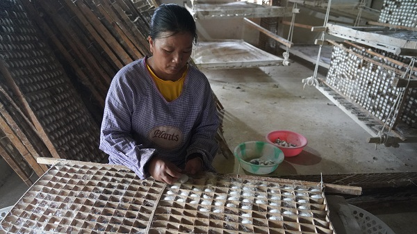 蠶農(nóng)收獲蠶繭。景東縣融媒體中心供圖