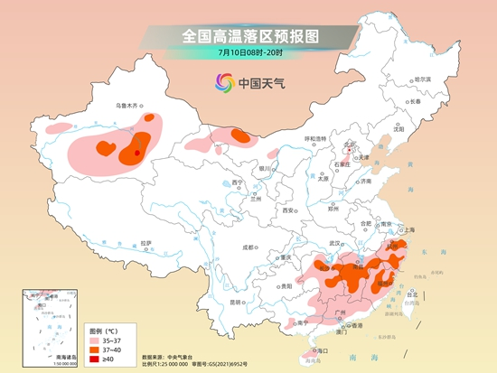 未來三天(7月10日至12日),四川盆地至淮河流域強(qiáng)降雨持續(xù),其中今天四川盆地東北部、江蘇西南部等地局地有大暴雨,需警惕致災(zāi)。此外,今天南方高溫范圍有所縮減,江淮、江漢一帶退出高溫行列,不過湖南、江西、福建等地高溫則持續(xù)發(fā)力。