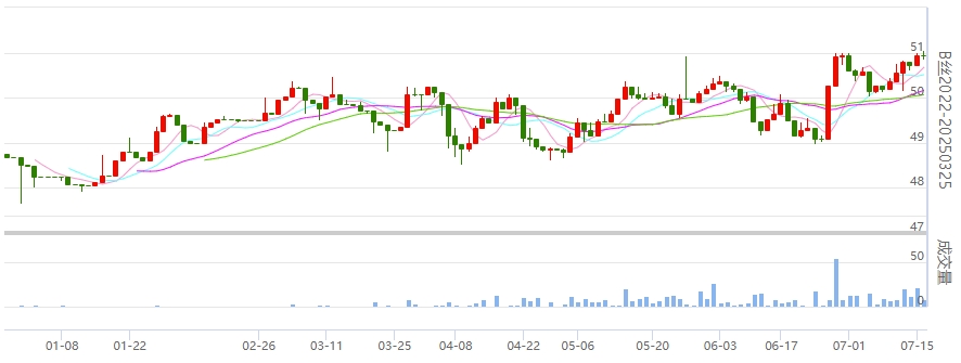 今日(2024年07月16日,周二)中國繭絲綢交易市場生絲電子指數(shù)上漲0.33%報5089.43點。B絲2022D(商檢4A級生絲):240725合約上漲0.18萬元報收于51.21萬元;240925合約上漲0.15萬元報收于51.21萬元;250325合約報平收于50.94萬元。B絲40/44-240725合約上漲0.09萬元報收于48.51萬元;A絲20/22-240725合約報平收于51.90萬元。(更多行情詳情到首頁進行查看)