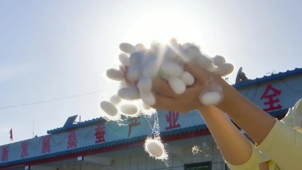 “我們家今年養(yǎng)了六七張蠶種,現(xiàn)在養(yǎng)蠶技術(shù)比過去提高了很多,像老蠶過去是用手一只一只捉到老蠶棍上,現(xiàn)在把蠶網(wǎng)一鋪自己就上去了,又省事,結(jié)的繭還干凈,產(chǎn)量和質(zhì)量也比原來高多了。”楊文學(xué)說。