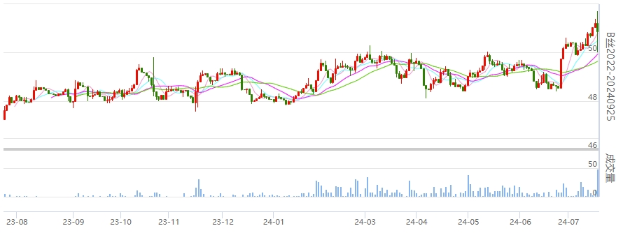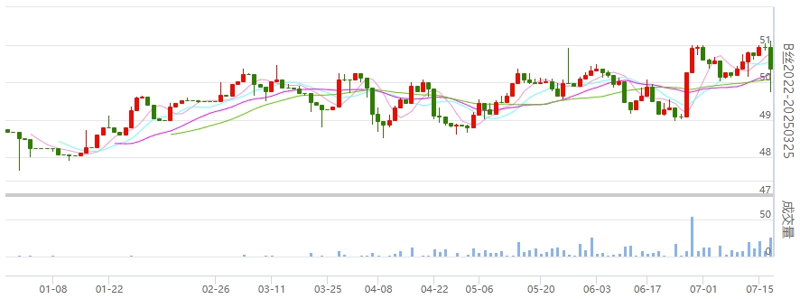 今日(2024年07月17日,周三)中國(guó)繭絲綢交易市場(chǎng)生絲電子指數(shù)下跌0.62%報(bào)5057.83點(diǎn)。B絲2022D(商檢4A級(jí)生絲):240725合約下跌0.36萬(wàn)元報(bào)收于50.85萬(wàn)元;240925合約下跌0.33萬(wàn)元報(bào)收于50.88萬(wàn)元;250325合約下跌0.57萬(wàn)元報(bào)收于50.37萬(wàn)元。B絲40/44-240725合約上漲0.03萬(wàn)元報(bào)收于48.54萬(wàn)元;A絲20/22-240725合約報(bào)平收于51.90萬(wàn)元。(更多行情詳情到首頁(yè)進(jìn)行查看)
