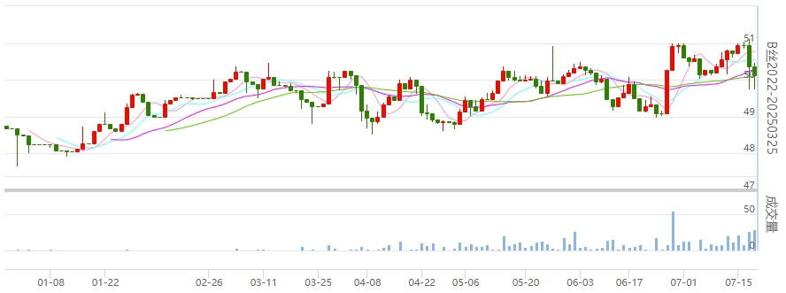 今日(2024年07月18日,周四)中國繭絲綢交易市場生絲電子指數下跌0.21%報5047.42點。B絲2022D(商檢4A級生絲):240725合約報平收于50.85萬元;240925合約下跌0.69萬元報收于50.19萬元;250325合約下跌0.24萬元報收于50.13萬元。B絲40/44-240725合約報平收于48.54萬元;A絲20/22-240725合約報平收于51.90萬元。(更多行情詳情點擊下方閱讀原文進行查看)