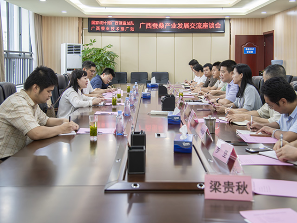 座談會上,調(diào)研組對廣西區(qū)近年推廣的人工飼料養(yǎng)蠶技術(shù)、設(shè)施蠶業(yè)、科研成果應(yīng)用、多元化利用、絲綢產(chǎn)品出口以及上下游產(chǎn)業(yè)鏈配套情況等內(nèi)容進(jìn)行了詳細(xì)了解,并就下一步與廣西蠶業(yè)技術(shù)推廣站開展務(wù)實(shí)合作,強(qiáng)化培訓(xùn)指導(dǎo),切實(shí)提高蠶桑產(chǎn)業(yè)統(tǒng)計(jì)數(shù)據(jù)質(zhì)量等相關(guān)事宜達(dá)成共識。