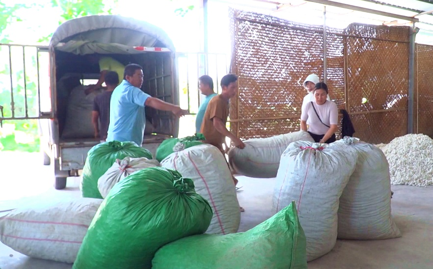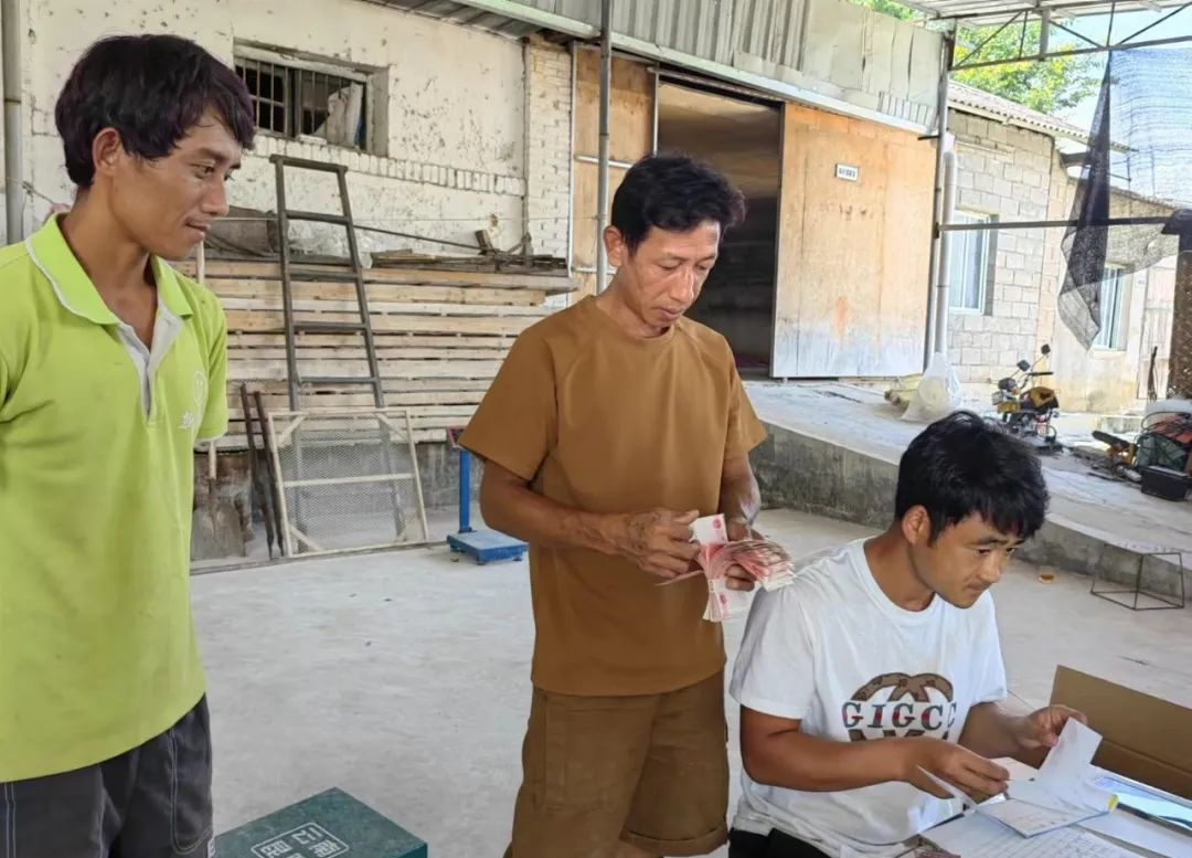 在沙河鄉(xiāng)南布村,前來雙江支福桑蠶養(yǎng)殖農(nóng)民專業(yè)合作社交售蠶繭的群眾絡繹不絕。評級、過秤、開單,群眾當場領到銷售款,滿臉笑容。
