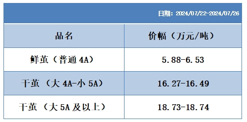 本周高品位生絲協(xié)作單位成交價(jià)格區(qū)間