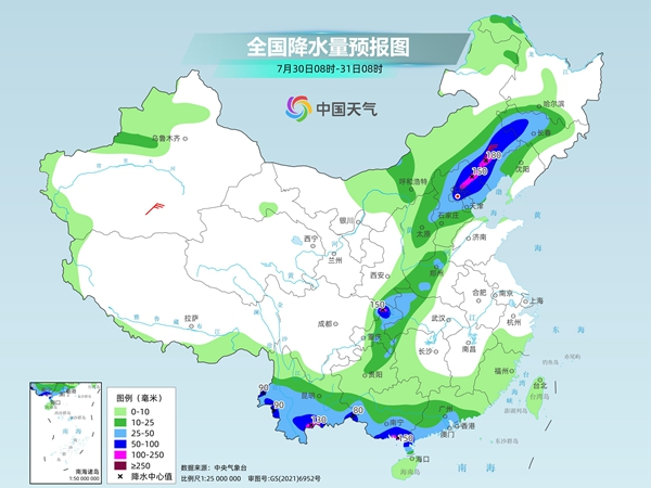 今明兩天,處于副熱帶高壓邊緣的重慶、陜西和華北、東北一帶強(qiáng)降雨頻繁,同時(shí)在強(qiáng)盛的偏南季風(fēng)環(huán)流影響下,云南和華南等地雨勢(shì)也較強(qiáng),上述部分地區(qū)可達(dá)暴雨或大暴雨量級(jí)。