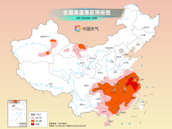 今晨,中央氣象臺(tái)繼續(xù)發(fā)布高溫橙色預(yù)警。預(yù)計(jì)今天白天,內(nèi)蒙古西北部、新疆南疆盆地、甘肅河西、河南南部、安徽、江蘇、上海、湖北、湖南、江西、浙江、福建、四川盆地中東部、重慶、貴州東部、廣西大部、廣東、海南島大部等地有35℃以上高溫天氣,其中,內(nèi)蒙古西北部、新疆南疆盆地、安徽中南部、江蘇中南部、上海、湖北東部和南部、湖南大部、江西、浙江、福建大部、重慶大部、廣西東部、廣東中西部和東北部等地部分地區(qū)最高氣溫37℃以上,安徽南部、江蘇西南部、浙江中西部局地可達(dá)40℃以上。