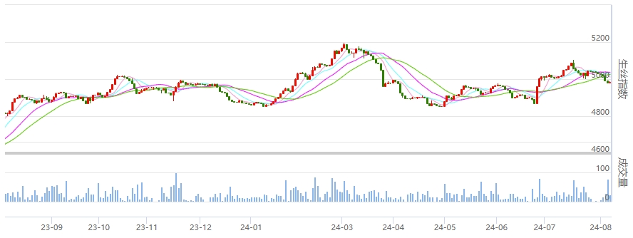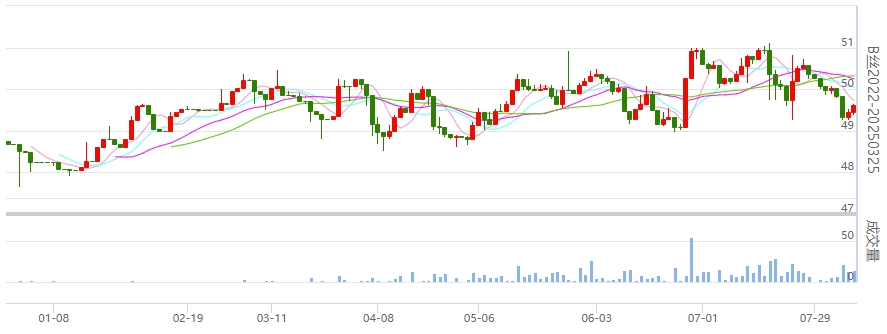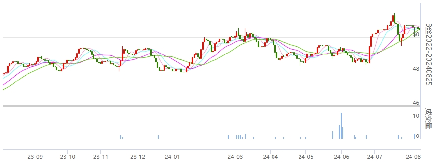 今日(2024年08月07日,周三)中國(guó)繭絲綢交易市場(chǎng)生絲電子指數(shù)微漲0.07%報(bào)4986.06點(diǎn)。B絲2022D(商檢4A級(jí)生絲):240825合約下跌0.03萬元報(bào)收于50.46萬元;240925合約上漲0.27萬元報(bào)收于49.74萬元;250325合約上漲0.18萬元報(bào)收于49.62萬元。
