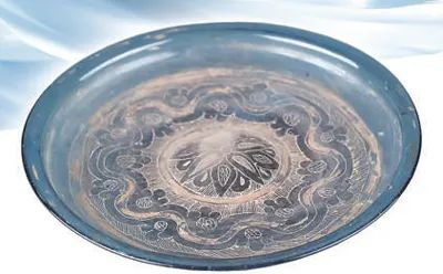唐時,長安城內(nèi)商賈云集、邸店林立,金銀器、寶石、琉璃、香料和絲綢、瓷器、茶葉等西來東往的貨物在此中轉(zhuǎn)交易。本次展覽中,一件出土于法門寺地宮的“八瓣團花紋描金琉璃盤”吸引參觀者紛紛駐足欣賞。這件造型精美的藍色琉璃盤產(chǎn)自地中海東岸,經(jīng)絲綢之路來到中國。它盤沿外折、腹壁斜收、盤底心凸起,盤內(nèi)布滿紋飾,中心為八瓣蕉葉狀圍成的團花,巧妙運用刻紋、釉料彩繪、描金等多種工藝,彰顯東西方審美碰撞交融下的和合之美。與琉璃盤一同出土的琉璃器皿中,有的具有東羅馬元素,有的體現(xiàn)波斯風(fēng)格,顯示出唐朝對異域文化的開放、包容與欣賞。
