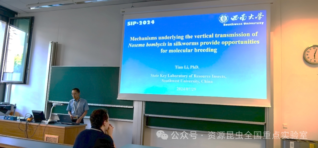資源昆蟲(chóng)高效養(yǎng)殖與利用全國(guó)重點(diǎn)實(shí)驗(yàn)室副主任李田研究員及青年骨干陳潔副教授參加了本次盛會(huì)。李田研究員應(yīng)邀以“Mechanisms underlying the vertical transmission of Nosema bombycis in silkworms provide opportunities for molecular breeding”為題作了大會(huì)報(bào)告,分享團(tuán)隊(duì)在解決困擾蠶業(yè)數(shù)百年的家蠶微粒子病“母?jìng)髯印眴?wèn)題上取得的突破性進(jìn)展。陳潔副教授作了題為“A protease associated with microsporidian spore germination”的交流報(bào)告,展示了課題組圍繞微孢子蟲(chóng)特殊侵染方式——發(fā)芽相關(guān)分子機(jī)制的最新進(jìn)展。會(huì)議報(bào)告不僅展示了最新研究成果,還激發(fā)了與會(huì)專家對(duì)于微孢子蟲(chóng)關(guān)鍵科學(xué)問(wèn)題的深入思考與廣泛交流。