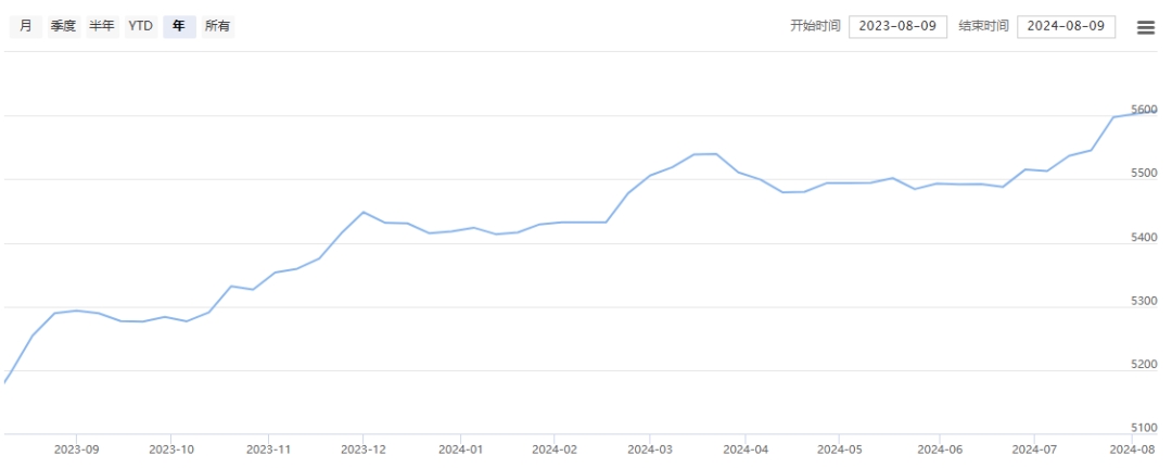 今日(2024年08月09日,周五)中國繭絲綢交易市場生絲電子指數(shù)微漲0.07%報(bào)4991.82點(diǎn),本周生絲指數(shù)下跌0.51%。B絲2022D(商檢4A級生絲):240825合約報(bào)平收于50.46萬元;240925合約上漲0.15萬元報(bào)收于50.01萬元;250325合約上漲0.06萬元報(bào)收于49.71萬元。