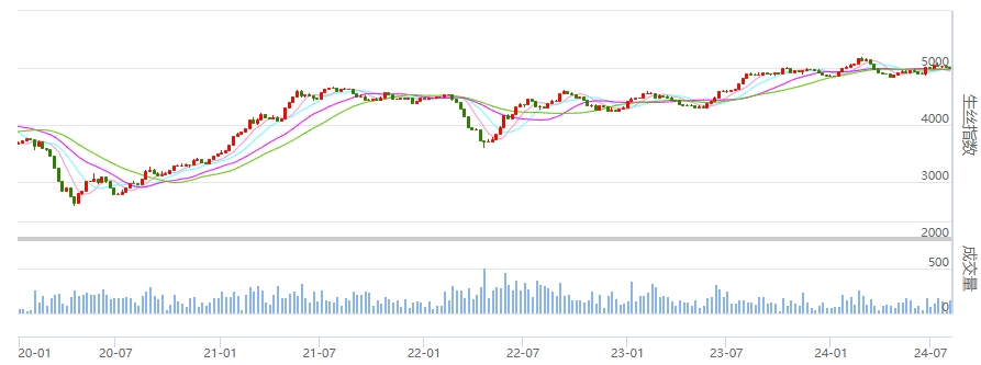 本周4A級電子生絲指數(shù),在周一到周三的下跌后,三個交易日連續(xù)小幅收紅。本周累計(jì)下跌0.51%報(bào)收于4991.82點(diǎn)。