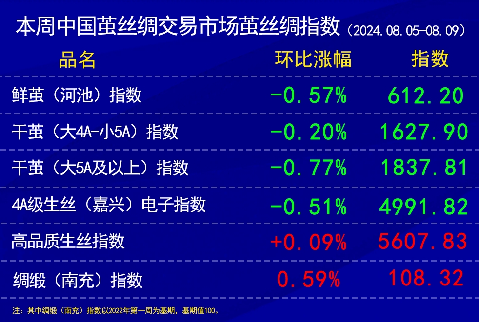 本周中國繭絲綢交易市場繭絲綢指數(shù)