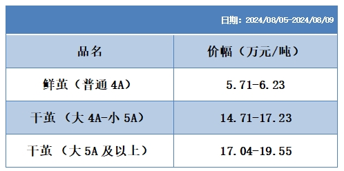 本周協(xié)作單位所報(bào)蠶繭價(jià)格區(qū)間統(tǒng)計(jì)