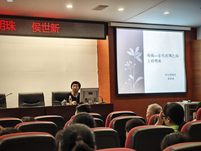 7月27日下午,在成都金沙遺址博物館,新疆維吾爾自治區(qū)博物館原館長(zhǎng)、四川博物院首席專家侯世新帶來“西域—古代絲綢之路上的明珠”主題講座,從新疆的地理概貌、絲綢之路促進(jìn)文明交流、絲綢之路與蜀錦等方面為大家答疑解惑。