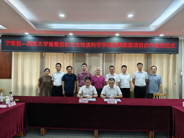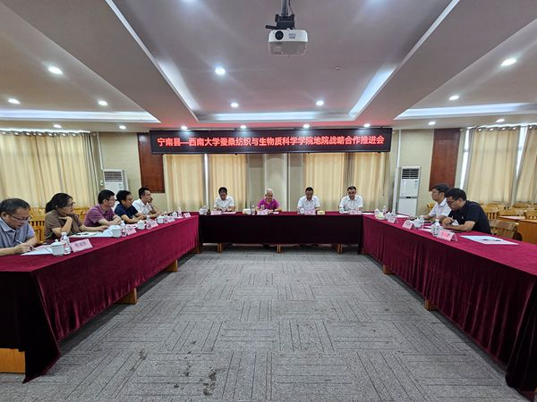 8月6日,寧南縣—西南大學(xué)蠶桑紡織與生物質(zhì)科學(xué)學(xué)院地院戰(zhàn)略合作推進(jìn)會在重慶西南大學(xué)召開。西南大學(xué)蠶桑紡織與生物質(zhì)科學(xué)學(xué)院院長、國家蠶桑產(chǎn)業(yè)技術(shù)體系首席科學(xué)家代方銀和寧南縣委常委、組織部部長王偉出席會議并講話,學(xué)院國家蠶桑產(chǎn)業(yè)技術(shù)體系原首席科學(xué)家魯成、寧南縣南絲路集團(tuán)有限公司黨委書記、董事長林平等20余人參加會議。