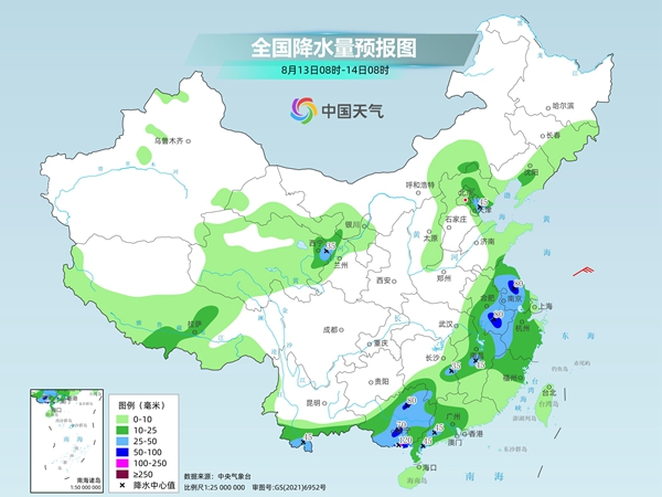 今后三天(8月13日至15日),在冷暖空氣頻繁交匯下,南方大范圍降雨持續(xù),西南地區(qū)南部、江南東部和南部、華南等地局地雨勢(shì)猛烈,并可能伴有強(qiáng)對(duì)流天氣。隨著降雨增多,高溫天氣也將隨之緩和,不過長(zhǎng)江沿線部分地區(qū)仍會(huì)有持續(xù)性高溫天氣,強(qiáng)度減弱。