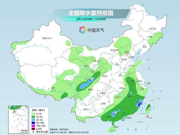 后天,甘肅東部、陜西中部、川西高原南部、四川盆地西部和南部、云南西北部、江南南部、華南中東部、臺(tái)灣島等地部分地區(qū)有中到大雨,其中,福建東南部、四川盆地西南部等地部分地區(qū)有暴雨。