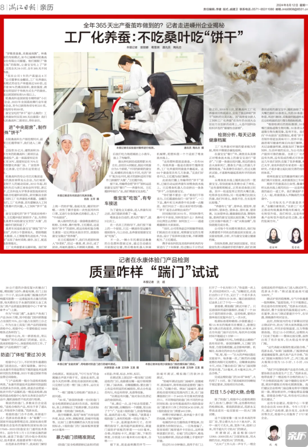種桑養(yǎng)蠶的傳統(tǒng)模式,如今已被嵊州陌桑高科股份有限公司顛覆。他們擺脫了“靠天吃飯”的限制,讓蠶寶寶吃上了“餅干”,實(shí)現(xiàn)全天、全年不間斷養(yǎng)蠶。蠶寶寶吃的“餅干”是什么做的?工廠化養(yǎng)蠶如何實(shí)現(xiàn)365天出蠶繭?記者走進(jìn)嵊州企業(yè)揭秘。8月12日出版的浙江日?qǐng)?bào)對(duì)此進(jìn)行親歷報(bào)道。