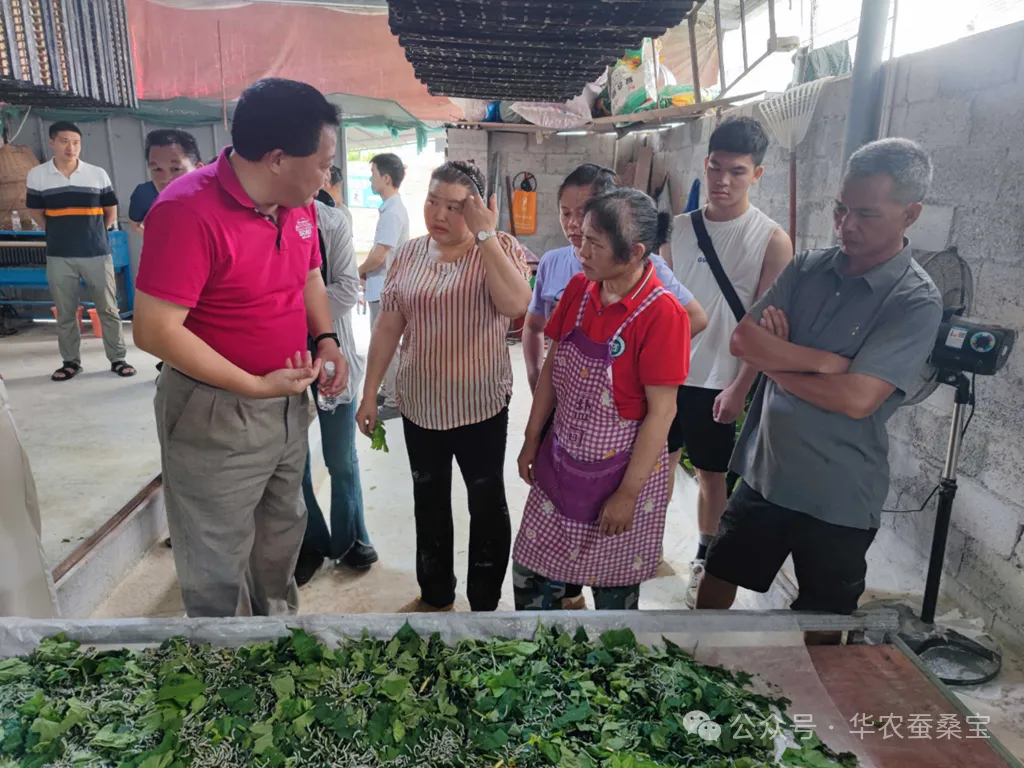 13日,劉吉平團隊前往馬山縣石塘村,探訪了該地的蠶戶,并就蠶室設施及桑葉飼養(yǎng)過程中的消毒細節(jié)給予了專業(yè)而詳盡的建議。