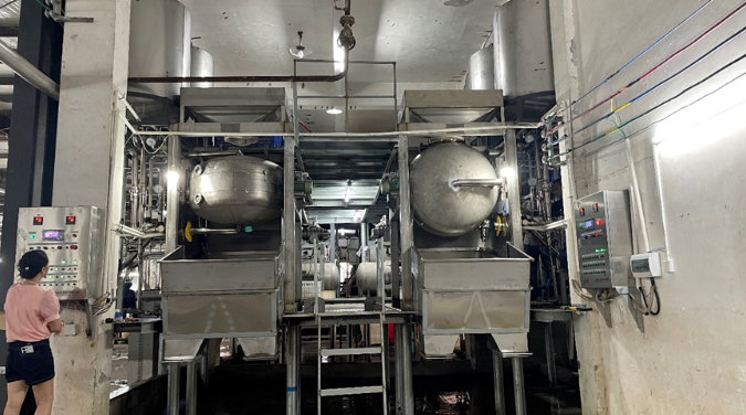 2024年7月,公司在原有2臺減壓自動煮繭機(jī)的基礎(chǔ)上又新上了2臺SR3020-8型減壓自動煮繭機(jī),于8月初投入生產(chǎn)運(yùn)行,淘汰原有煮繭設(shè)備全部升級為減壓自動煮繭機(jī),滿足了8組自動繅生產(chǎn)高品位生絲的需要。