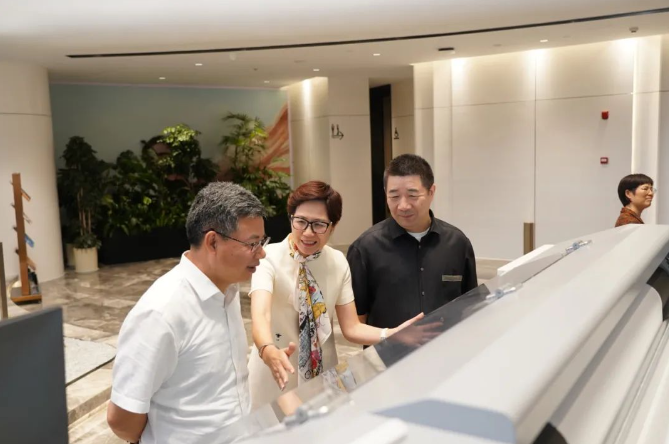 走進萬事利科創(chuàng)中心,暨軍民副主任一行參觀了以萬事利AI花型設計大模型、無水印花一體機為代表的新質(zhì)生產(chǎn)力,近距離感受萬事利絲綢以數(shù)字創(chuàng)新引領的全方位蛻變。