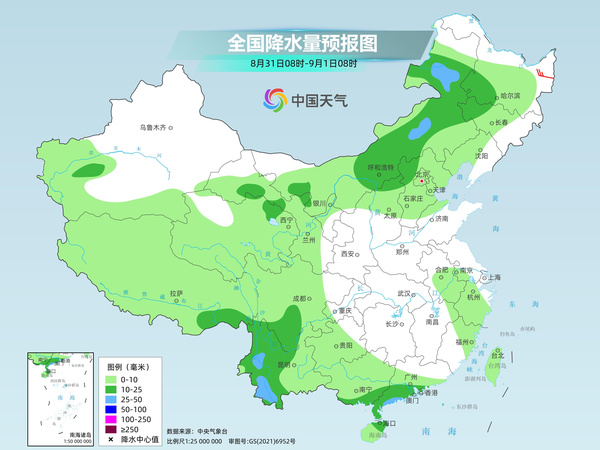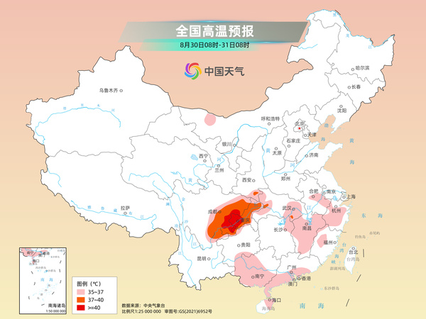 未來三天(8月30日至9月1日),北方降水過程將自西向東展開影響,華北、東北及黃淮等地局地有大雨或暴雨,伴有強對流天氣,當?shù)匦杈柚行『恿骱樗?、山體滑坡、泥石流等次生災(zāi)害的發(fā)生。同時,川渝地區(qū)高溫酷熱天氣持續(xù),或持續(xù)至9月上旬,明天起江南高溫天氣也將再度發(fā)展增多,公眾需及時補水降溫,謹防中暑和熱射病。