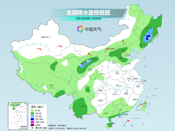 明天,東北地區(qū)中東部、青海東部、甘肅中部、寧夏北部、山西北部、河北中北部、云南中西部、廣東南部沿海、海南島等地部分地區(qū)有中到大雨,其中,吉林東部等地局地有暴雨。