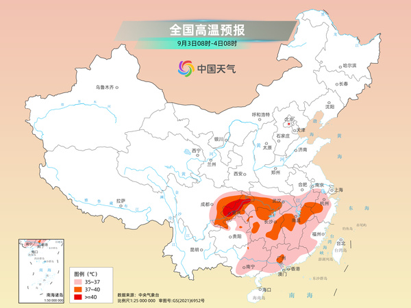 9月伊始,秋老虎橫行,南方仍出現(xiàn)了大范圍的高溫天氣,陜西南部、四川盆地、貴州東部及江漢南部、江南、華南大部等地出現(xiàn)35至39℃的高溫天氣,四川東北部、重慶、湖南北部及湖北宜昌、咸寧等地局地40至42.4℃。